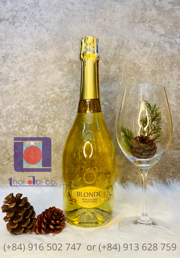 Vang nổ Blonde Sparkling Gold Flakes 22K hay còn được biết đến là vang nổ Vảy Vàng với những lá vàng nhỏ li ti lấp lánh lửng lơ trong dòng rượu. Rượu vang Blonde Sparkling Gold Flakes 22K có màu vàng sáng nên với vảy vàng, chai rượu càng thêm quyến rũ và thu hút. Hương vị của rượu ngọt ngào với hoa quả Rượu vang nhập khẩu Blonde Sparkling Gold Flakes 22K để lại hậu vị sảng khoái và dễ chịu cho thực khách. Rượu thích hợp làm rượu khai vị hoặc dùng cùng các món tráng miệng nhẹ nhàng.